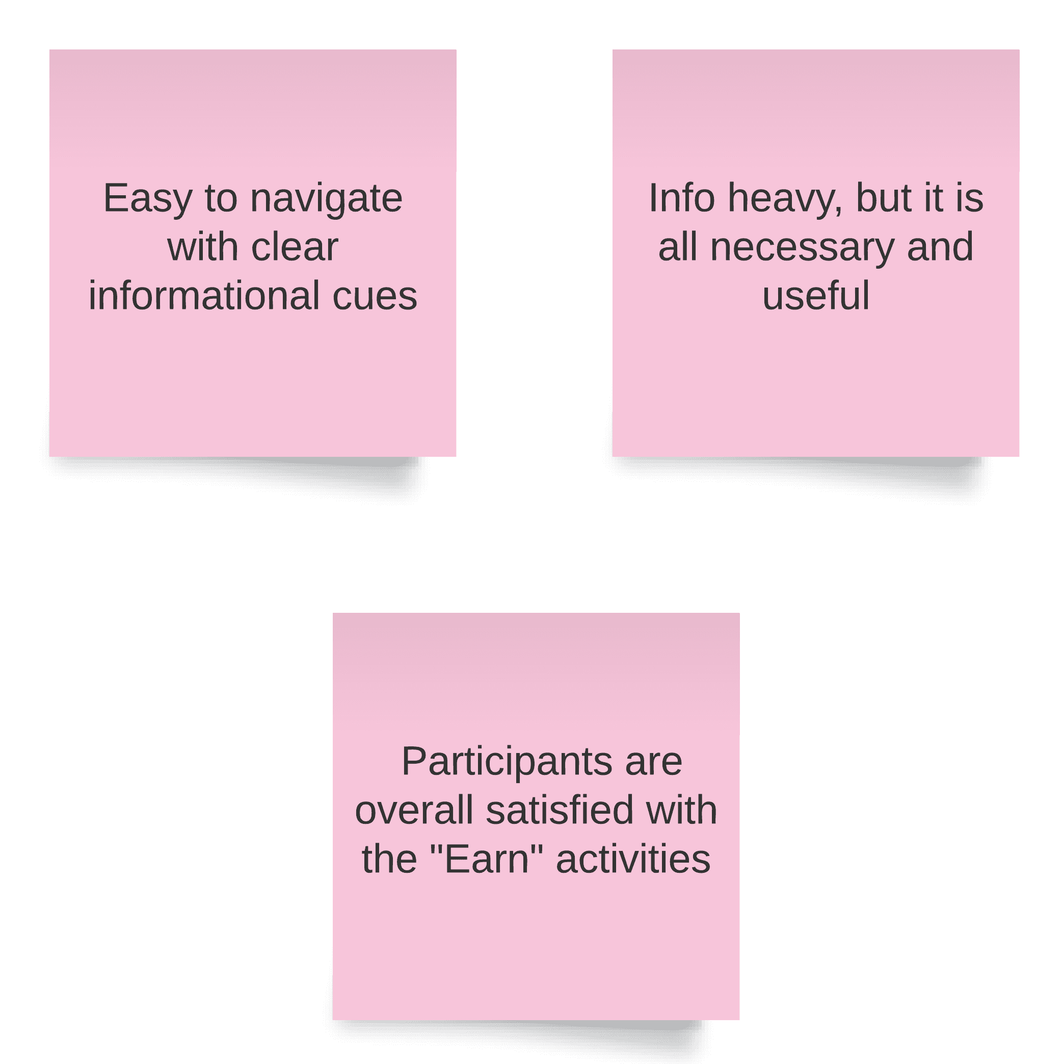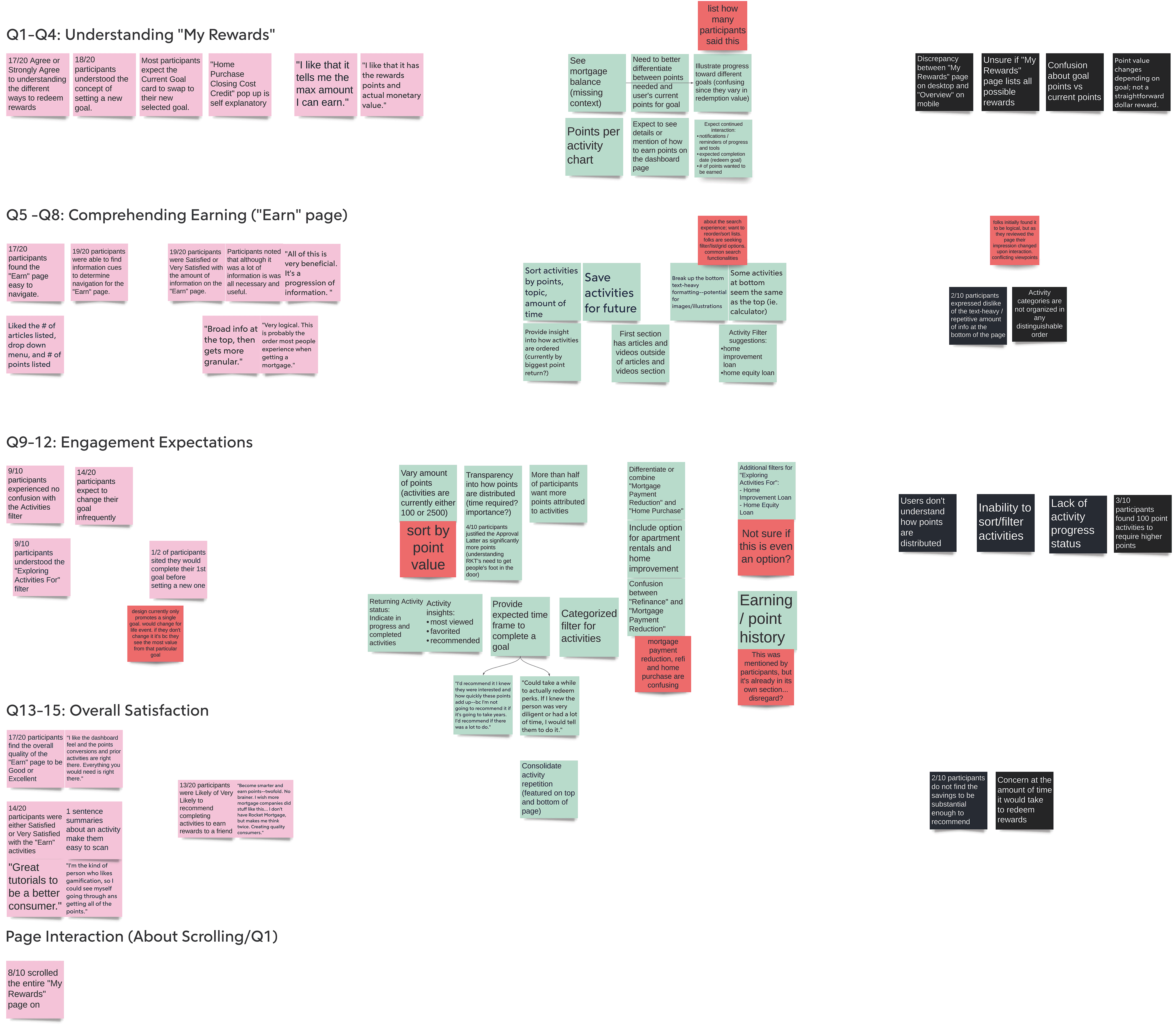 To analyze the raw data, I employed the research method of Rose, Buds, and Thorns. This technique allowed me to evaluate what's working well (Roses), opportunities for improvement (Buds), and struggles or challenges (Thorns). The below board is of desktop & mobile insights combined.
