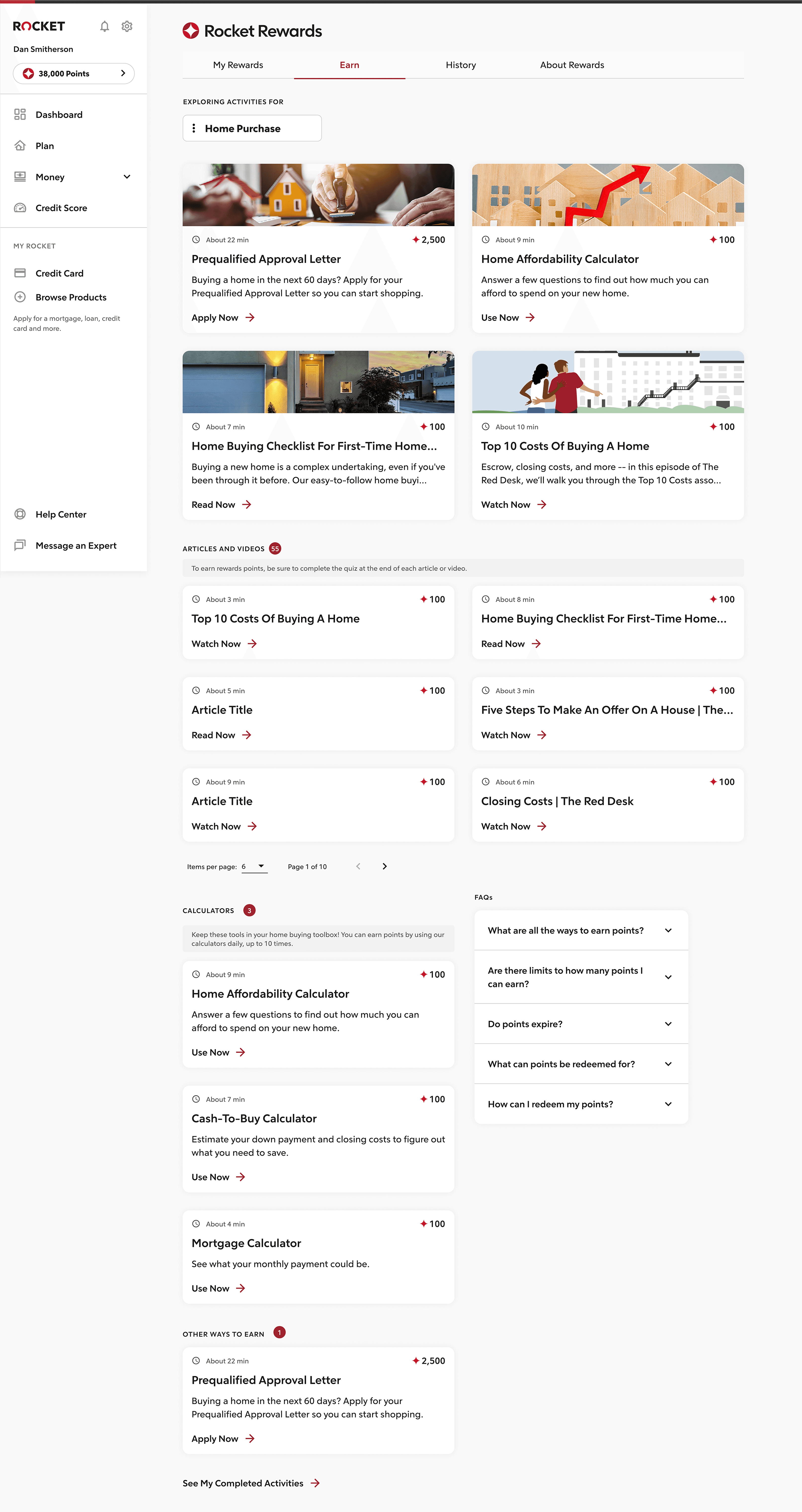 This case study illustrates a usability analysis to understand the scalability of earning and redeeming points across four Rocket companies. Prior to launch, I ensured program logistics by advocating for user understanding of the newfound service.