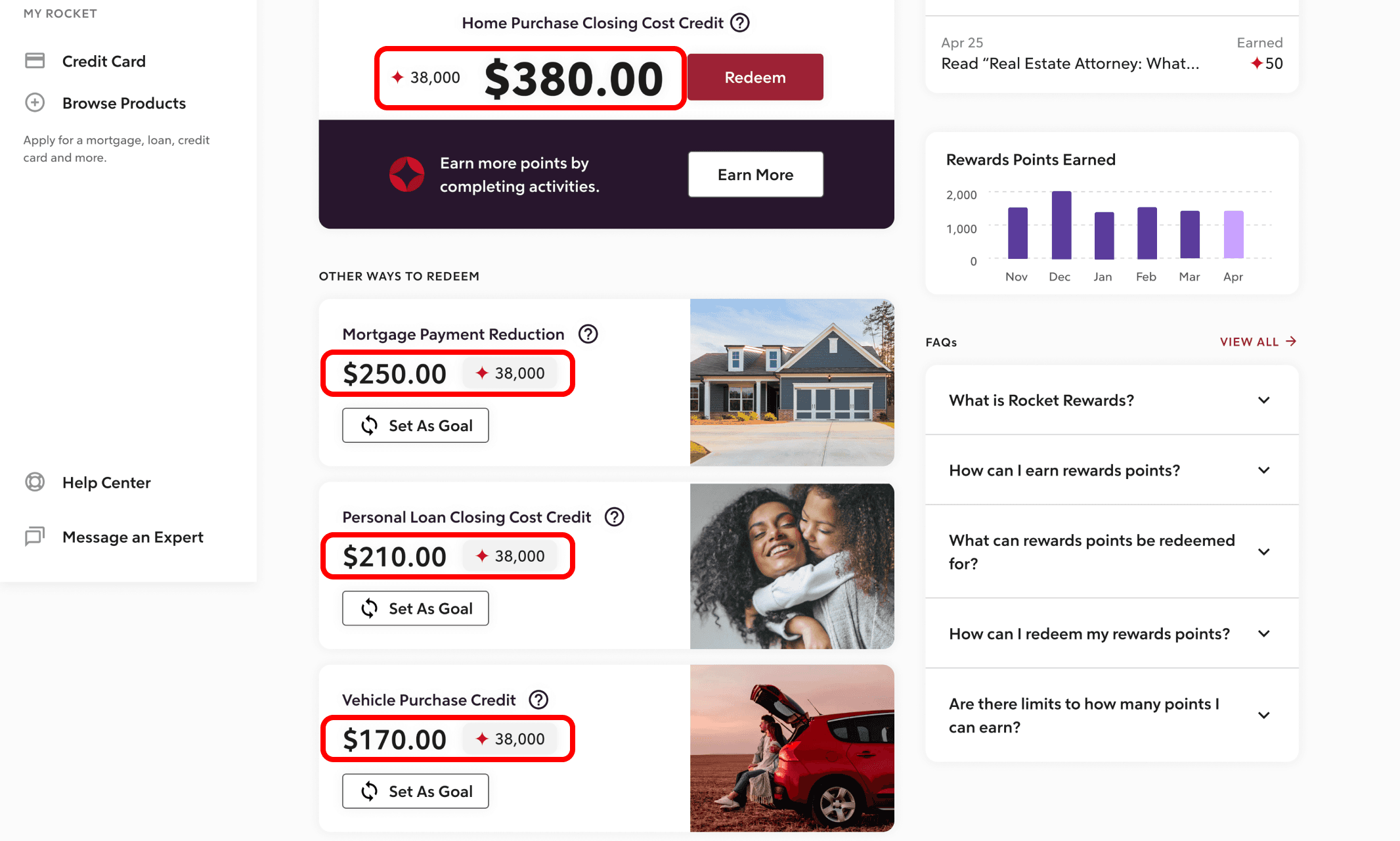 Rocket Rewards launched in November 2022 with the mission of helping clients save money on their next home purchase. The program rewards members for taking the steps they're already taking as they move toward buying a home.